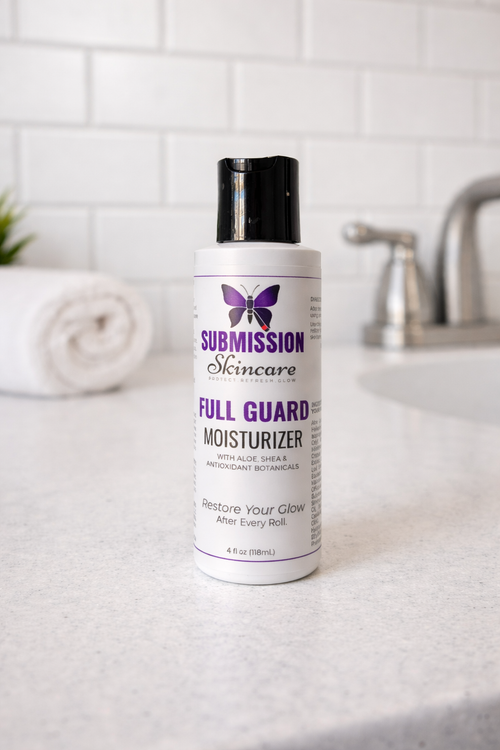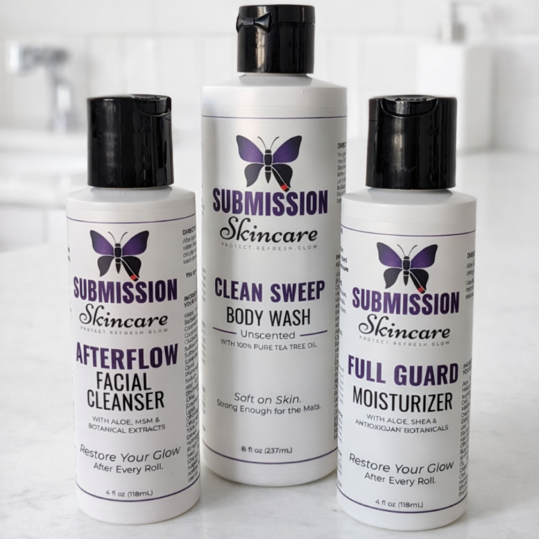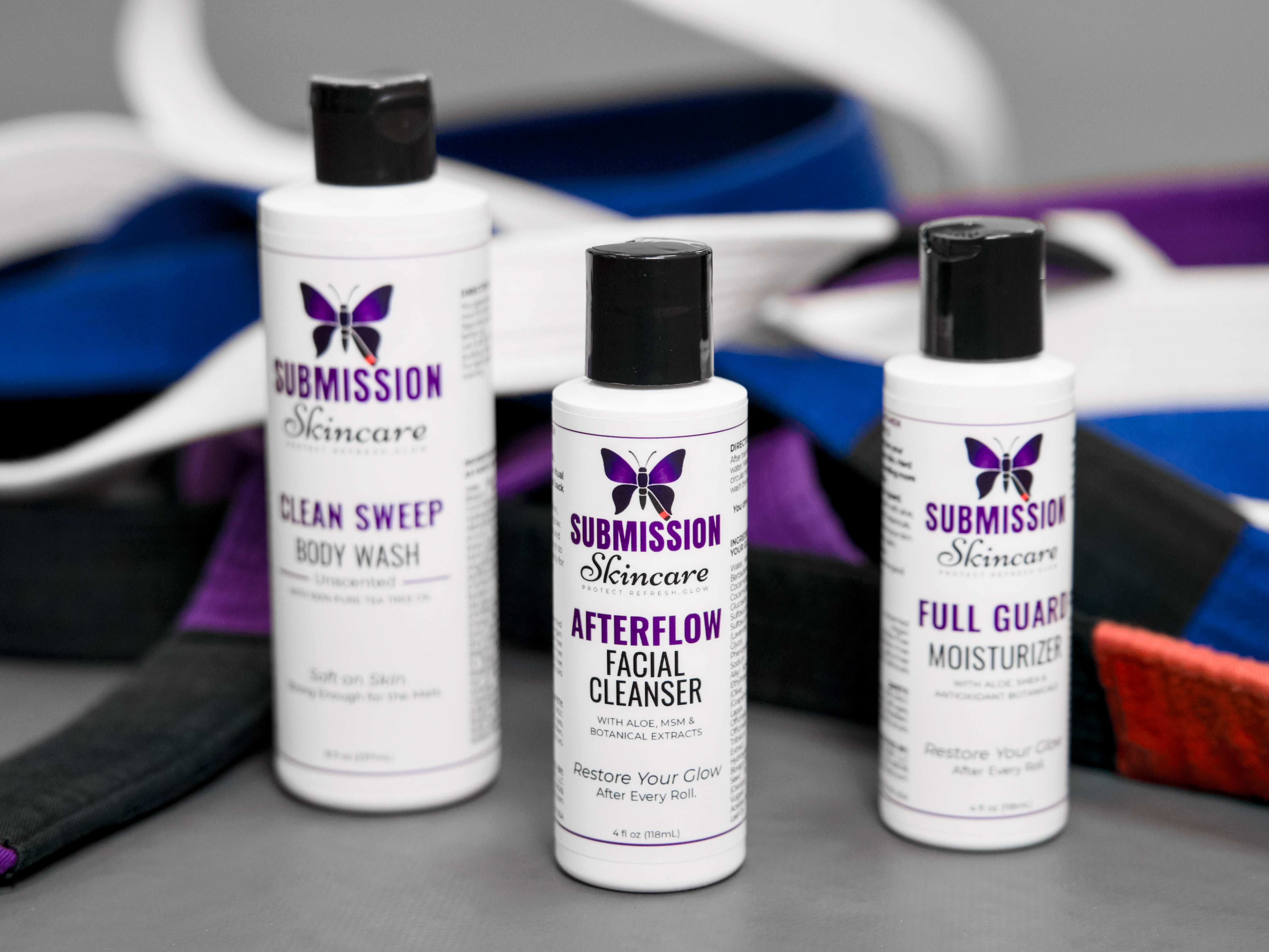 Submission Skincare was born out of frustration. One night, laying in bed, I realized how much lotion I was using just to feel comfortable after showering. The products that actually cleaned my skin after training left it dry and stripped. The ones that felt nice didn’t truly handle mat grime. Everything felt like a compromise and none of it felt made for women like me.